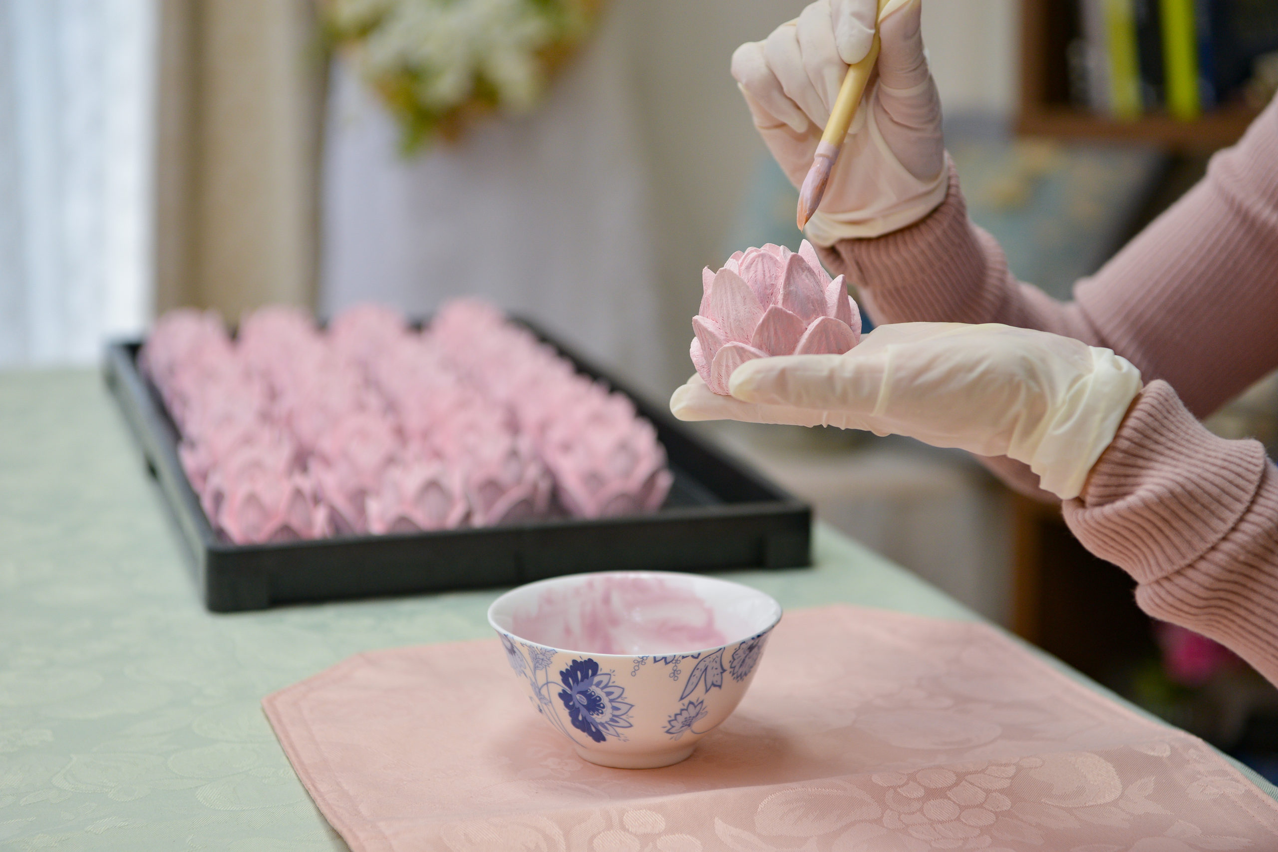 時間をかけて失敗を重ね、ようやく完成。制作の担い手がなかなか見つからない中、高齢者の方々や就労継続支援B型施設の皆さまにご協力いただき、現在も制作を進めています。私は、この「漆喰の花 ラコッタ」を世界中に広めたいと考えています。